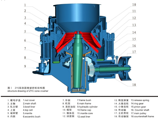 聽 破碎腔:两个破碎元件形成的空间内部结构,是圆锥破碎机破碎物料的地方;
