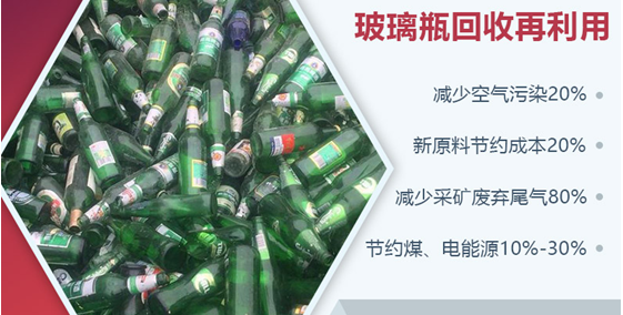 根据市场上统计,一吨废玻璃计算,就可以节约石英砂720公斤,少用纯碱250公斤,节约长石粉60公斤,节约煤炭10吨、电400度,而且一吨废旧玻璃回炉后,可再生2万个酒瓶,比利用新原料生产节约成本20%左右,数据稍微偏差。