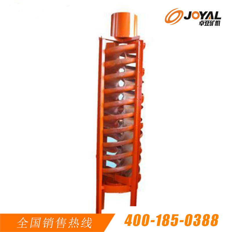 聽 螺旋溜槽的螺旋槽的设计材料为玻璃钢,并且螺旋槽的内表面还涂有耐磨材料,保证了螺旋溜槽的耐磨性以及较长的使用周期。并且还可以根据用户的具体需要,做成不同的层数。一般常用的有单头,双头,三头以及四头等几种不同的结构。