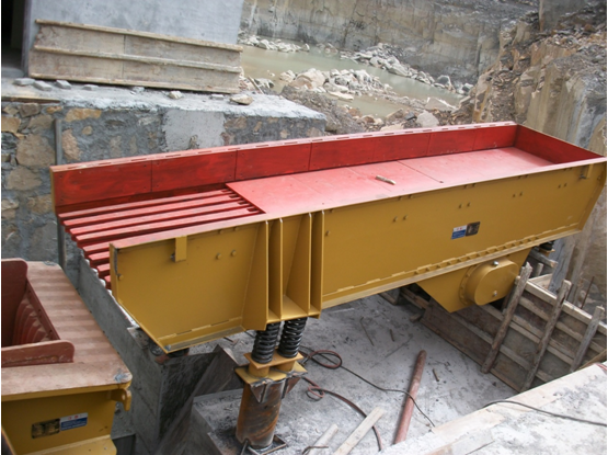 振动给料机是一种常用的给料设备,在生产中可以将块状或颗粒状的物料均匀、连续的送至受料设备,是整条生产线的一道工序。其后经常跟颚式破碎机破碎,振动给料机的工作效率不仅对颚破的产能有重要影响,对整条生产线的生产效率也有影响。